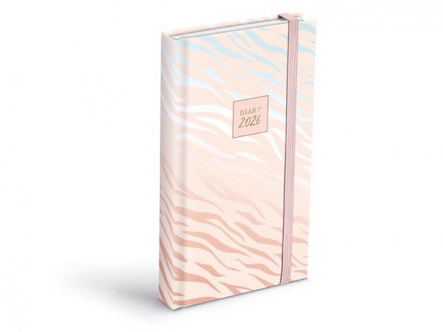 Denní diář 2026 s designem inspirovaným zvířecím motivem v tlumených tónech růžové, béžové a světle modré působí originálně a svěže. Obálka je z matného lamina s parciálním lakem, který zvýrazňuje vybrané detaily a dodává diáři jemný lesk na správných místech. Barevně sladěná gumička nejen ladí s designem, ale i drží diář pevně zavřený.