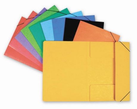 Odkládací mapa se třemi klopami a gumičkou, barevný karton PREŠPÁN 335g/m2,tištný EAN kód na zadní straně. Balení 20 ks v jedné barvě