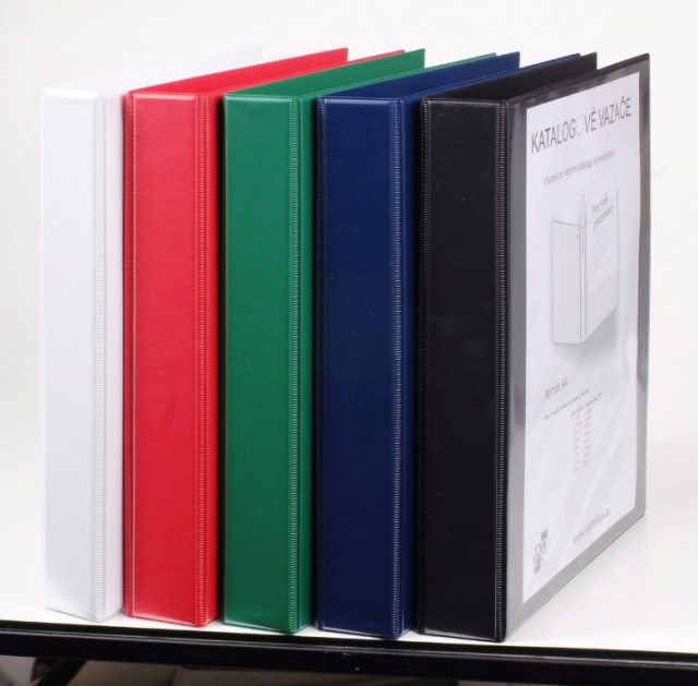 Zakládací pořadač s průhlednou kapsou na přední straně a hřbetu. 4 kroužková mechanika, kroužek má tvar písmene "D"