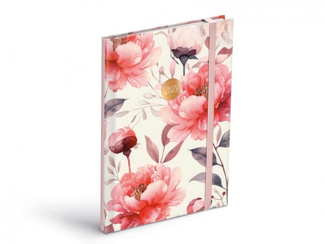 Rok 2026 může začít stylově – s tímto nádherně zpracovaným týdenním diářem ve formátu A5, který zaujme jemným květinovým motivem v romantických tónech. Elegantní obálka ve světle šedém provedení je opatřena matným laminem s parciálním lakem, který vytváří působivý kontrast matných ploch a lesklých detailů a zároveň chrání diář před poškozením. Diář uzavírá Speciálním detailem jsou odtrhávací rožky na stránkách, které umožňují rychlé nalistování právě probíhajícího týdne bez zbytečného hledání.